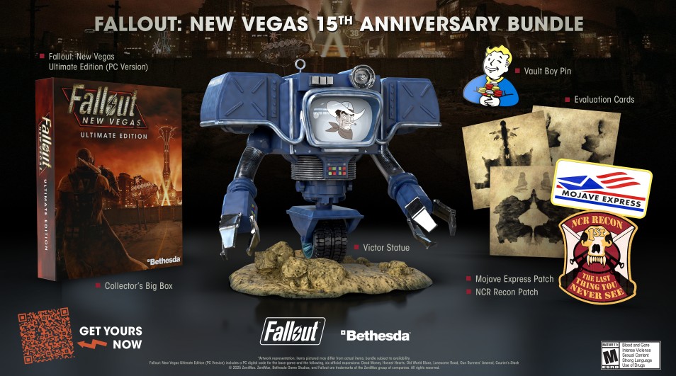 Fallout: New Vegas, desarrollado por Obsidian Entertainment, cumple 15 años este 2025. Para homenajear a este RPG tan popular, se lanzará el lote del 15º aniversario de Fallout: New Vegas. Esta edición estará disponible para su reserva a partir del 23 de octubre en la tienda oficial de Bethesda.